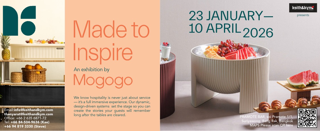 The Door to a New Era in Hospitality Join us to discover how Mogogo is introducing a new standard of F&B Furniture Design. This exhibition invites Thailand’s leading hospitality professionals to explore the intersection of Functionality and Gastronomy.